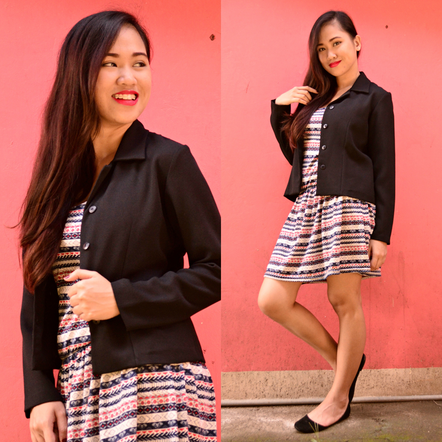 Dress: Aztec Print Dress by Shopaholics! from SM | Outwear: Blazer | Shoes: Black Flats from Meroma
