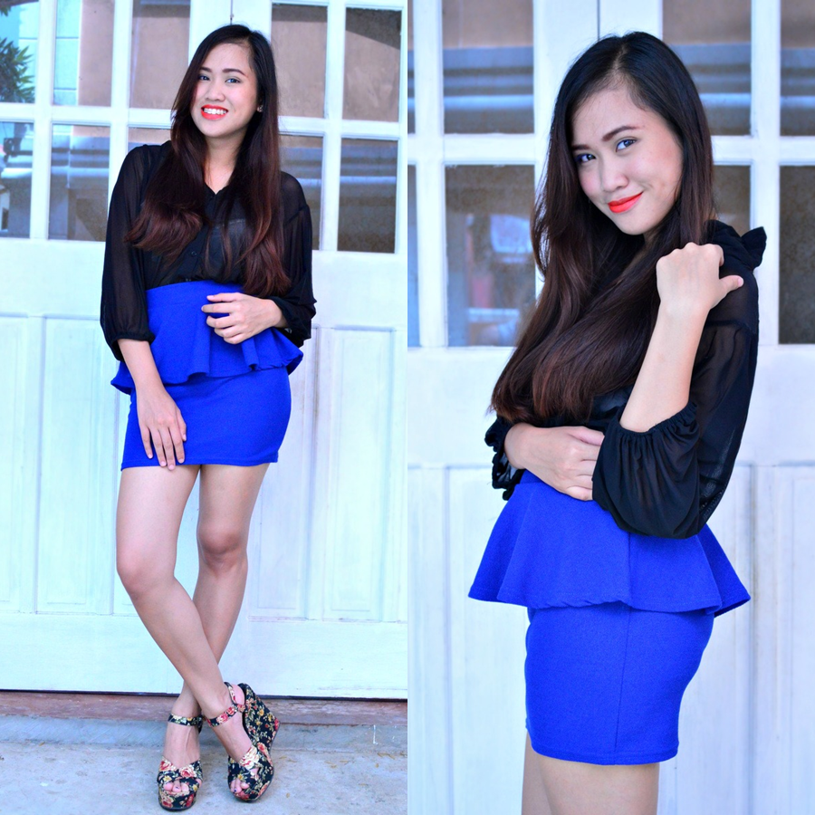 Top: Sheer Top from Forever21 | Bottom: Pemplum Bandage Skirt from USSO | Shoes: Floral Wedges from Forever21