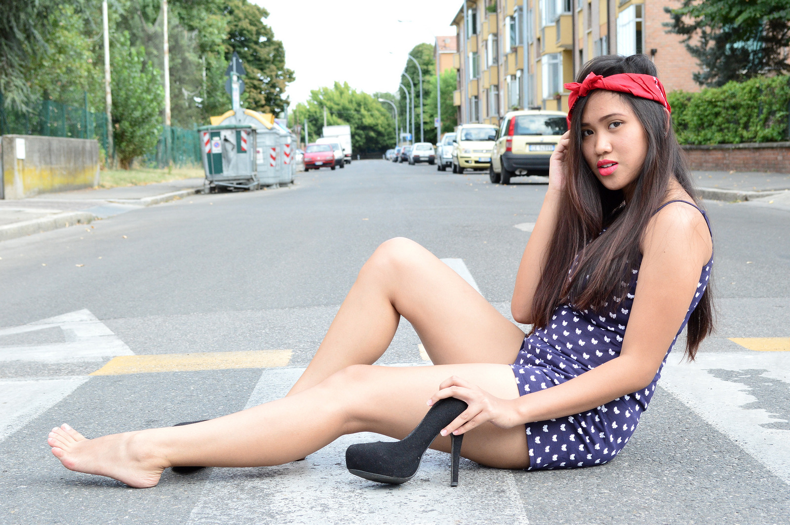 1. First, I love the first picture: the background goes so well with your gansta headband and badass face hahhha! Second how coool is that your brother takes photos of you, I wish I had someone who did that! And lastly, girl you should’ve known sitting on the road with this hot weather was not a good idea hehhhhhee and running bare foot on italian road? Not so good idea either when you live in a bigger city! :D It’s already enough to wear flats for an hour to get black feet :P But the bottom line is, you look great end of story :)