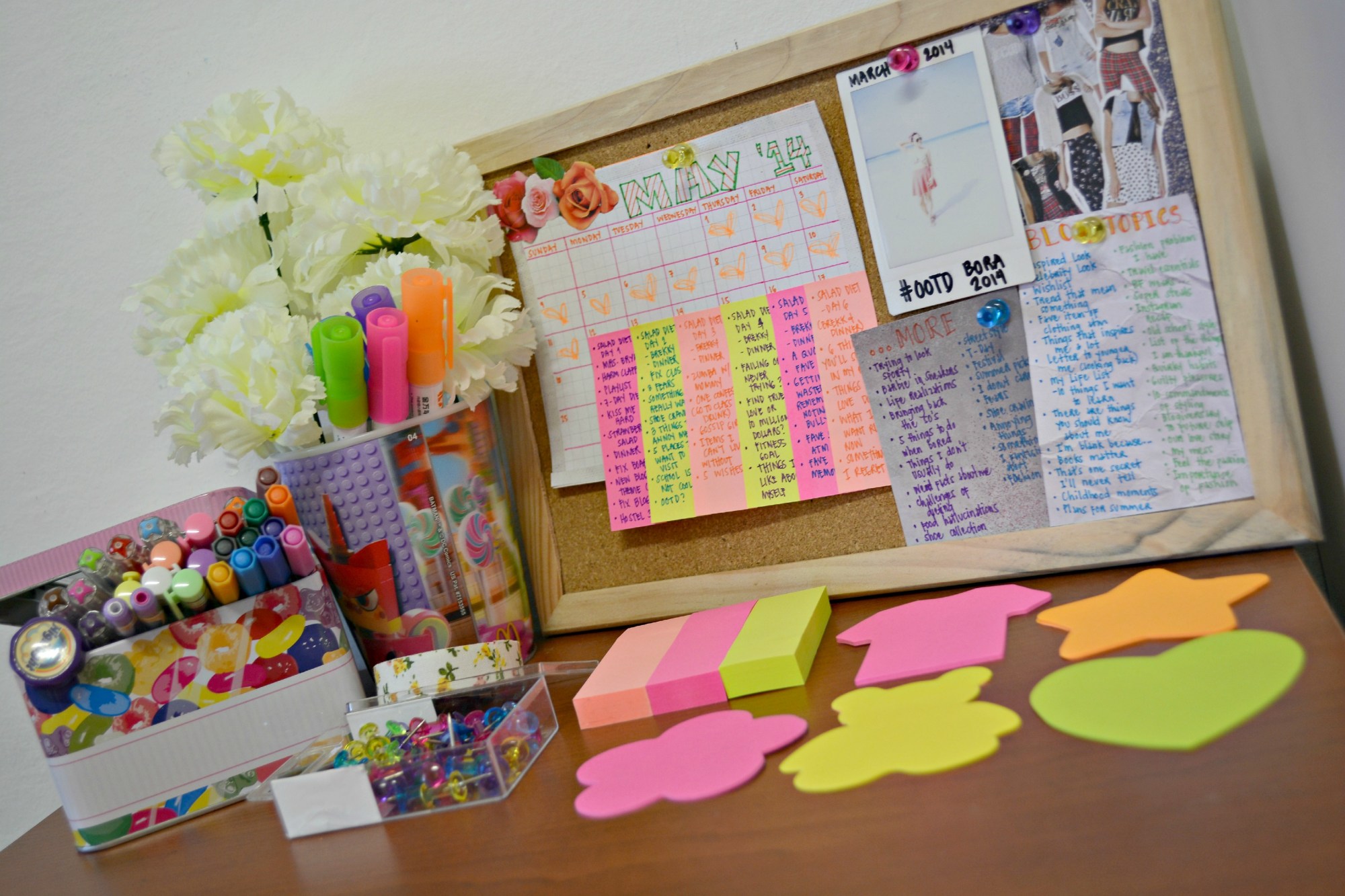 Here’s a quick post showing you my plan board! I’ve been telling you a lot of times that I am very OC! I want things to be clean and oganize. As you can see, my plan board has a DIY calendar (where I post my to-dos for that day), my Boracay 2014 OOTD shot, some inspirations and a list of blog topics since I cannot think of what to blog about most of the time. Smart moves huh? :p That’s just basically what my plan board is all about. And also, I have my colored sign pens, pastel and neon pens, colored push pins, fabric tape and post-its in different shapes. That’s just it! Hashtag artsy!