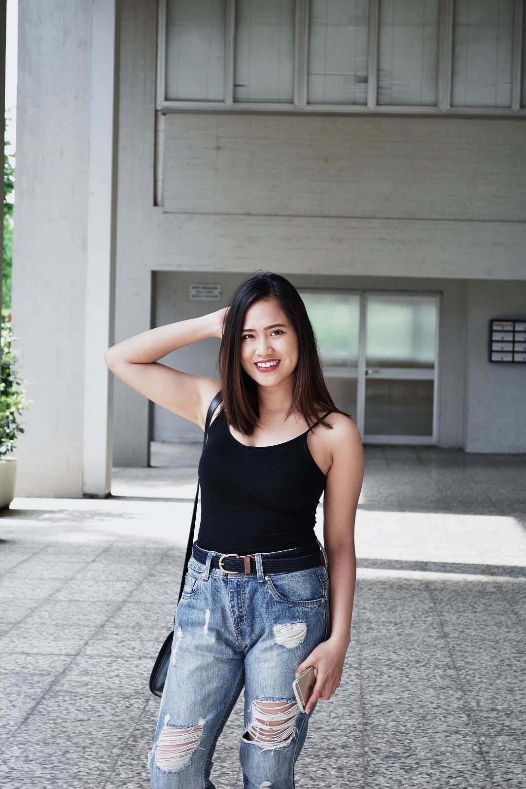Yup, I cut my hair short again. Last week has been so stressful for me (my face could tell), so I chopped off all the stress away. Yay! This will be my last haircut for now, I swear. Haha :p Anyway, doing school works from 8 in the morning up to 12 midnight made me a lazy dresser. Threw a pair of ripped jeans and a plain top for today’s ootd, and some leather to complete my look.