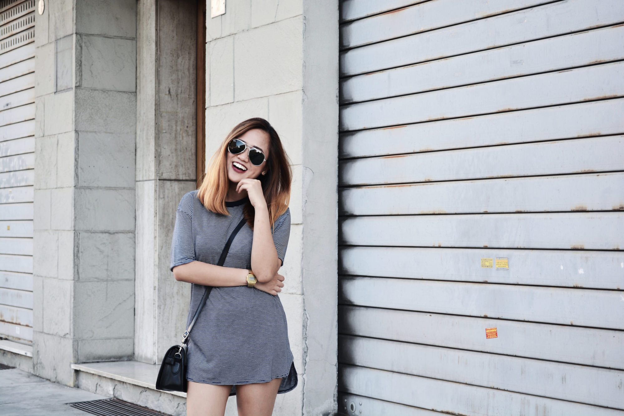 I wanted to create a balanced look using my dress - not-so-casual, more youthful but stylish at the same time, so I paired mine with a leather creepers, sling bag and a pair of aviators. I just love throwing on a t-shirt dress. It’s simple but you just have to be creative and playful with styling, depending on the occasion.