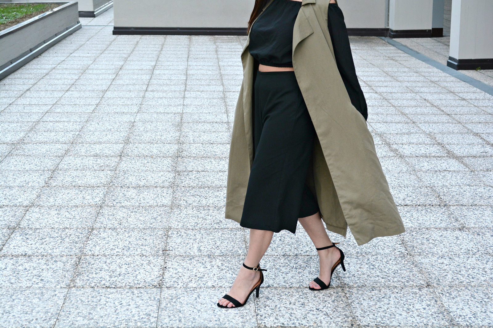 A safe bet for semiformal is a pair of culottes! It’s proven that culottes are not just comfortable and easy to wear, but also happen to look great! Culottes are my essential at the moment as you can pair them up with any top. I paired mine with an off-shoulder top DressLink has sent me! They’re a perfect combo because the top is really comfortable too! During the party, I was worried I could get sweaty, but because the top is quite thin, it serves its purpose well! I didn’t get sweaty at all, it gives me a breathable feeling. Also, I layered my whole look with a military green trench vest to contradict my all black ensemble & to add a little twist to my look. Then I threw a pair of heels. All done!